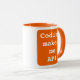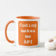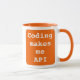 The perfect gift for all you programmers out there who love a good API! This mug has the text "Coding makes me API" set on an orange background.