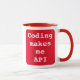 The perfect gift for all you programmers out there who love a good API! This mug has the text "Coding makes me API" set on a red background.