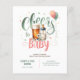 Rustic and cute Beers and Bottles, Cheers to Baby, Baby is Brewing with wildflowers, greenery in sage and peach colors baby shower invitation, gender neutral. Text fields both sides.