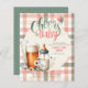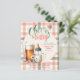 Rustic and cute Beers and Bottles, Cheers to Baby, Baby is Brewing with wildflowers, greenery in sage and peach colors (gingham Plaid pattern and Polkadots) baby shower invitation, gender neutral. Text fields both sides.