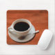 A hot cop of coffee sits on a beautiful wood table. A perfect way to have you coffee and not worry about spilling it on your computer.