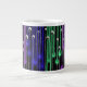 This coffee mug has an image of an abstract pencil drawing on it which went through adjustments on Photoshop to make it what it is. As an artist I have spent lots of time working with bright colors and the more I have done that the more I have decided that green, blue, and purple are my favorite colors to use together. And having the design over a pitch black background makes it stand out more.