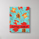 This coffee cup pattern on a turquoise blue background includes a red area with the words "Coffee Addict" on this art canvas. It can also be used for personalization with a name, monogram or initials. These coffee art designs will delight coffee lovers. This collection of original art features whimsy coffee, cappuccino and espresso coffee cups in bold and vibrant colors of red, orange, gold, brown, green and black. There are multiple images in this collection and they all blend together on the products. Fully customizable for name, business name, initials or other words. Great gift ideas for a coffee lover for stunning kitchen art.