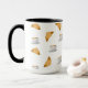 This coffee and croissant fancy pattern design is featured on gentle soft background.