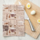 This cute kitchen towel is the perfect accessory for when friends come over for coffee. It features images of brim full coffee cups along with a variety of coffee terms in all kinds of typography. At the bottom is a brown ornate banner with the text "Coffee and Friends The Perfect Blend". Unique!