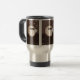 Travel mug with a delicious design. The word, "coffee," makes the shape of a mug and hearts are floating around ripples of mocha, latte, cappuccino, macchiato, espresso, and americano. Great for any coffee lover.