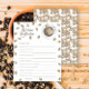 Watercolor coffee beans and cup of coffee and beans pattern. Coffee brewing baby shower. Coffee themed baby shower with. Text with coffee ring and with coffee beans and cup of coffee.