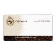 A cup of steaming coffee is encircled by a burst in cafe colors. The burst is repeated as a watermark while your website or other info stands out against the coffee bean background panel on the bottom. Available with matching products.