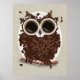 Our original coffee owl print is made from individually placed coffee bean artwork, to create a wise owl on an oval plate. Perched on two cinnamon sticks and with wide cup and saucer eyes full of coffee, this creature would make the perfect owl lover gift, and/or coffee lover gift.