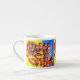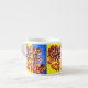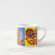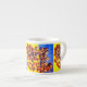 Funky Coffee Beans On A Yellow And Blue Bag / Material Espresso Coffee Cup / Mug to add to your home / office / business drinkware collection. A cool gift / present idea for all who love custom design personalized items, positive vibes, food and organic theme, coffee drink etc. Keywords: busy print, yellow, royal blue, pale, foodie, healthy.