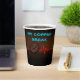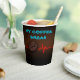 Coffee Break paper cup with gradiant colors from black to brown.Images of a coffee bean and heart line...