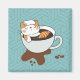 Funny cat relaxing with(in) a coffee, with a croissant.