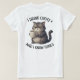 This image shows a grumpy cartoon cat holding a cup of coffee, with the humorous phrase “I drink coffee and I know things” written around it. The artwork combines humor and attitude, portraying the cat as confident and slightly annoyed.