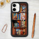 Phone case featuring a retro style painting of coffee, cats and books. The B is for books of course :-) A purrfect gift for a bookworm loving cats.