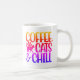 tart your day with the perfect trio: coffee, cats, and chill vibes! This charming mug features the playful phrase “Coffee, Cats & Chill” in a modern font, accompanied by a couple of adorable cat silhouettes. Whether you’re savoring your morning brew, curling up with a good book, or enjoying a lazy afternoon with your feline friends, this mug is the ultimate companion for those who know the true meaning of relaxation.