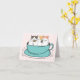 Cute cats in a teal coffee mug. Cat face outline with custom text! Great for coffee people.