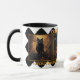 Personalized photo mug featuring 3 of your own photos (or spooky Halloween scenes), framed by a classic black and white design. With your custom funny (or other) texts. Great as a gift for a Halloween or cat lover.