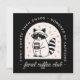 Funny raccoon lovers feral coffee club powered by caffeine sarcastic quotes first coffee then chaos. Cool weird wild animal retro vintage aesthetic girls friends squad gifts small print card.