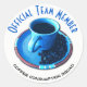 Seal the bag of goodies or invitation with a coffee lovers seal. The design features a close-up photo of a coffee filled blue cup and saucer with coffee beans. The blue text above the photograph reads "Official Team Member". The black text below the cup and saucer photograph reads "Coffee Consumption Squad". Fill in the template fields to change the text, remove text or click customize to select a typeface style, size, and color you like.