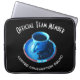 This neoprene laptop sleeve is great for any coffee lover. It features my digitally altered close-up photograph of a coffee filled blue cup and saucer with coffee beans over a black background. The arched white text above the photograph reads "Official Team Member". The bowed white text below the cup and saucer photograph reads "Coffee Consumption Squad". Fill in the template fields to change the text or click customize to select a typeface style, size, and color you like.