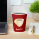 Beige cup of coffee. Custom background color. Custom text on both sides.