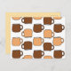 Coffee Cup Pattern Postcard original design by Nisha Prabhu. Send a warm greeting or a thoughtful note with our delightful Coffee Cup Pattern Postcard! Perfect for coffee lovers, this charming postcard features an eye-catching design adorned with an array of whimsical coffee cups, each showcasing its own unique style and personality. The warm, inviting colors create a cozy ambiance that makes this postcard ideal for any occasion—whether it’s a quick hello, a thank you, or an invitation to your next coffee gathering. Whether you're looking to brighten someone’s day or promote your coffee shop, our Coffee Cup Pattern Postcard is a delightful choice. Ideal for coffee enthusiasts or café promotions.