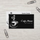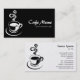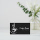 A business card template with an attractive coffee cup motif. Company details on the front, with name and contact details in the reverse side with a repeat of the motif. In this version the motif on the front is white on black or a dark color. The motif on the reverse side black on white or a light tone. This card can also be customized in lots of ways.