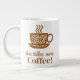 Giant Mug in a stylized coffee cup is filled with a rich coffee bean pattern and topped with rising steam. Below, the phrase “less talkee, more Coffee!” adds a humorous, relatable touch perfect for coffee lovers.