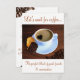 A "have a break" illustration with a white cup of coffee - the coffee with heart shape made of foam, 2 pieces of chocolate zwieback rusk and a few coffee beans on a wooden background.