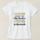 Coffee doesn't ask silly questions - coffee understands typography expression word in art in mixed font in golden yellow / brown and black with a blue accent stripe.