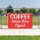 This bright banner will let customers see your coffee shop or booth drive-through is open and ready for business! It features clear, easy-to-read lettering to catch attention. Feel free to customize this signage with your own words, if you like!