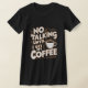 Make a bold statement before your morning brew with our "No Talking Until I Get My Coffee" T-shirt! Featuring vibrant, eye-catching lettering on a sleek black background, this tee is perfect for coffee lovers who need their caffeine fix before any conversation. Start your day in style and let everyone know to approach with caution until that first cup is poured!