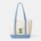 Love the durable cream colored canvas and navy blue contrasted handles. Perfect for carrying my laptop and papers.