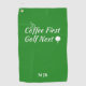 Coffee & Golf—The Perfect Combo! Start your round right with this modern golf towel, featuring a chic green background and playful white script that reads "Coffee First" with a steam swirl on the ‘O,’ and "Golf Next" with a golf ball and tee graphic. Whether you're gifting it for a birthday, Christmas, or any day, this towel is the perfect accessory for the golfer who runs on coffee and loves a round of golf. It’s designed for style, durability, and a bit of humor, making it an essential addition to any golf bag. Grab yours today and share your love for coffee and golf in one fun towel!