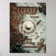 An image of a freshly brewed coffee in a white cup with the text "Coffee First Then Your Monkey Business".