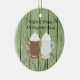 Lightweight, smooth, pure white ornament with nice sheen. Perfect size to be seen from across the room ... and to attract closer inspection! Price was great for ordering enough for the whole family! Clear, bold black design just as requested. Matches the order exactly. Just so nice!