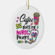 Colorful retro style nurse ceramic ornament featuring a cup of coffee along with medical supplies and text that reads Coffee Gives Me Nurse Powers, great for the nurse who loves her coffee!
