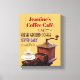 For the coffee lover, this fun 8"X10" canvas print will look great in your kitchen, breakfast nook or in-home coffee bar. My original graphic design features a vintage coffee bean grinder, with a fresh brewed cup of coffee. The header text, in red, 'Jeanine's Coffee Café can be customized with any name and color.