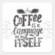 A coffee lovers design that says coffee is a language in itself. This design looks really effective on these Stickers