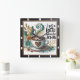 This decorative square wall clock features a coffee cup with a heart design, a golden coffeemaker, and vibrant floral accents, including a sunflower and blue lilies. The inspiring quote "I got a Latte Love for Jesus" is prominently displayed. This artistic design blends warmth and comfort, creating a beautiful, faith-inspired piece for kitchen or living room decor.
