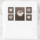 Stickers with a delicious design. The word, "coffee," makes the shape of a mug and hearts are floating around ripples of mocha, latte, cappuccino, macchiato, espresso, and americano. Great way to express your love for coffee.