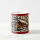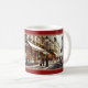Illustrated mug featuring a French city scene in retro style with coffee shops and bakeries. A feel good coffee mug for any coffee lover.