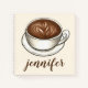 Spiral notebook design features an original marker illustration of a ceramic coffee latte, printed on a tan background. Just personalize with the name of your favorite coffee lover.