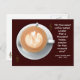 "Ah! How sweet coffee tastes! Lovelier than a thousand kisses, sweeter far than muscatel wine!” Our unique coffee and music themed card features the words penned by German classical composer Johann Sebastian Bach (1685 - 1750) for his famous "Coffee Cantata," a comic opera about coffee addiction. We've teamed the phrase with a photograph of an inviting cup of caffe latte with latte heart art. The cup of coffee has a treble clef musical note on either side. The card would be perfect for coffee addicts and lovers of classical music, especially Bach. It would be a nice way to invite someone to meet up over coffee, too, of course!