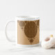 "I'm wild about coffee" is the theme of this modern morning coffee mug. This mug features a beautiful design of a pattern of geometric circles decorated with an earth tone, wild cat pattern. The many circles come together to form a large triangle. This is a special gift for someone who loves cats and really loves coffee. The text can be changed to reflect anything you prefer in your morning mug.