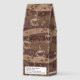 Features doodles of steaming coffee cups, coffee beans against a coffee brown background.