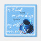Slap this humorous magnet message and thought on your refrigerator or filing cabinet. This square magnet features a close-up photograph of a blue coffee cup and saucer with dark coffee beans. The typography message reads "Is it bad that on some days I prefer my coffee over people?!" For you or the coffee lover in your life.