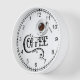 A modern and fun clock with a backward clock face has the word coffee in the middle below a realistic cup of coffee that has a silver teaspoon resting on the saucer. This design is ideal for coffee lovers; for a barista; coffee shop or restaurant. They are a fun and cool gift for kids and adults too.