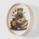 Coffee-Loving Frog Reading Books Clock