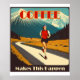 You run over high mountains and do ultra running races because of coffee and coffee alone. This great design shows a runner in the mountains in the style of a retro vintage travel poster.